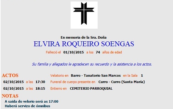 D.E.P. Dª.ELVIRA ROQUEIRO SOENGAS