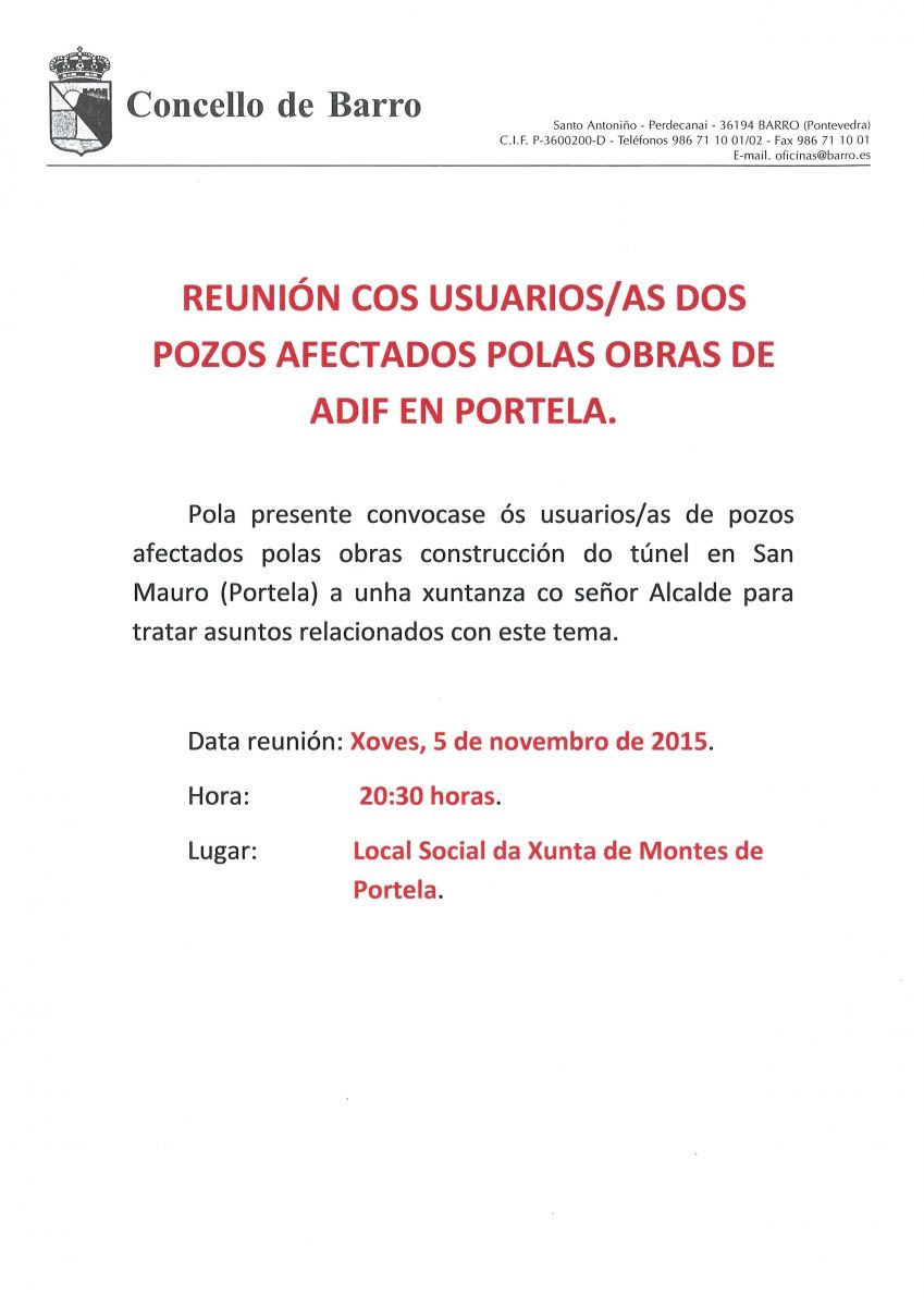 REUNIÓN COS USUARIOS/AS DOS POZOS AFECTADOS POLAS OBRAS DE ADIF EN PORTELA