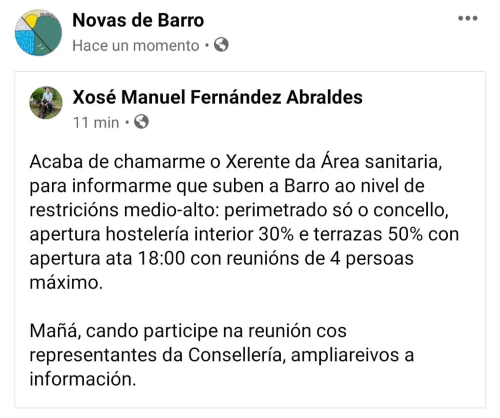Barro pasa ao nivel de restricions medio – alto