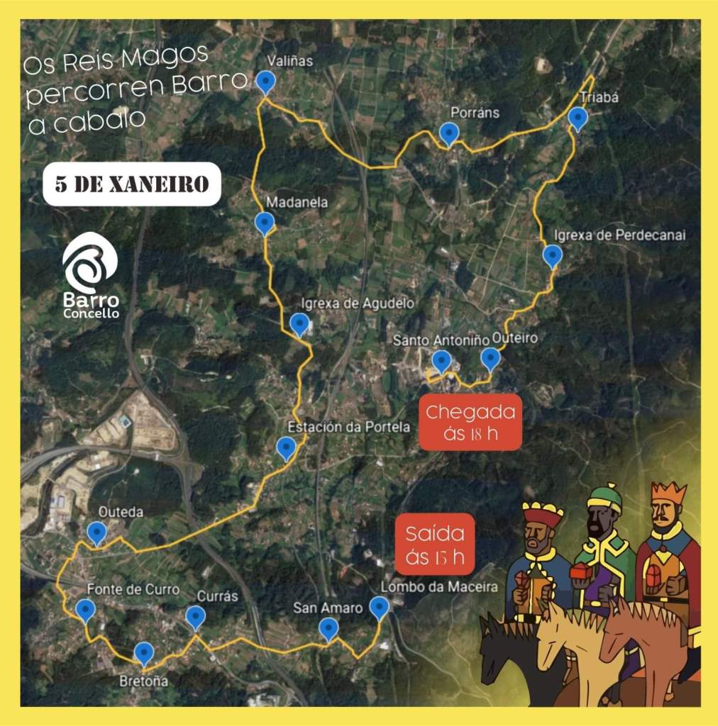 👑 Este é o percorrido que farán os Reis Magos por Barro, en carruaxes de cabalos.