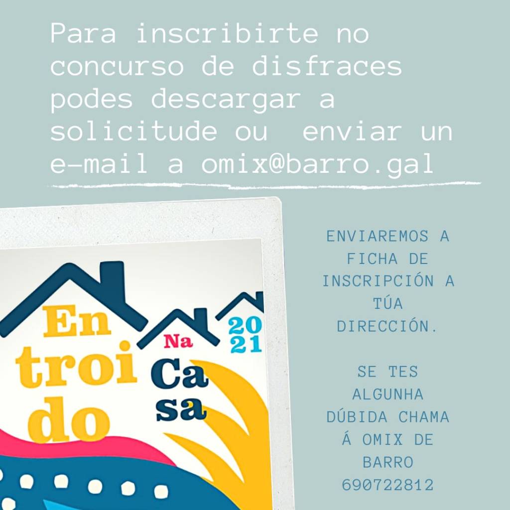 O Concello de Barro, con motivo do Entroido 2021, convoca un concurso de disfraces para persoas empadroadas no Concello de Barro, establecendo dúas categorías: individual e grupos convivintes.