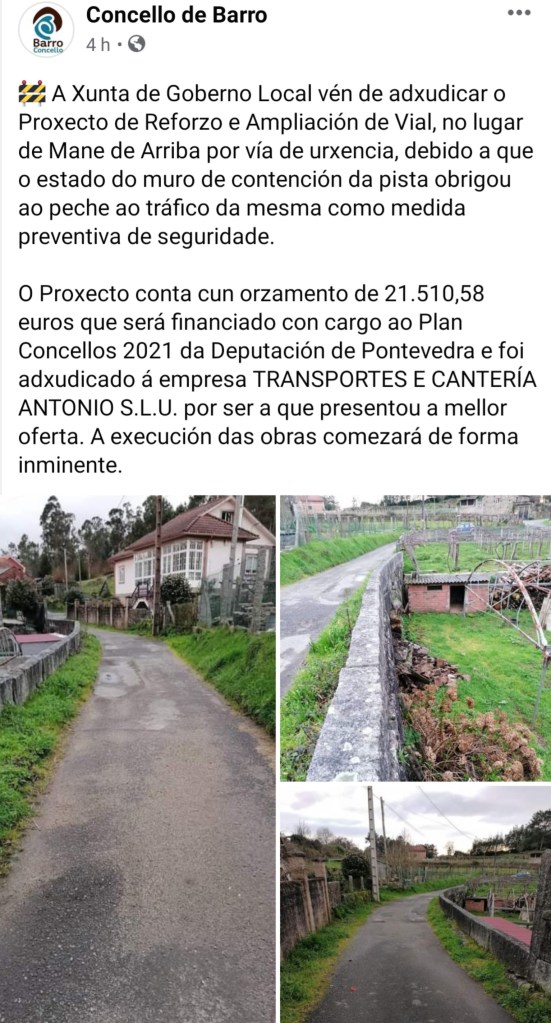 REFORZO E AMPLIACIÓN DE VIAL NO LUGAR DE MANE DE ARRIBA