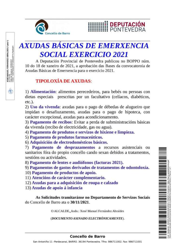 AXUDAS BÁSICAS DE EMERXENCIA SOCIAL EXERCICIO 2021