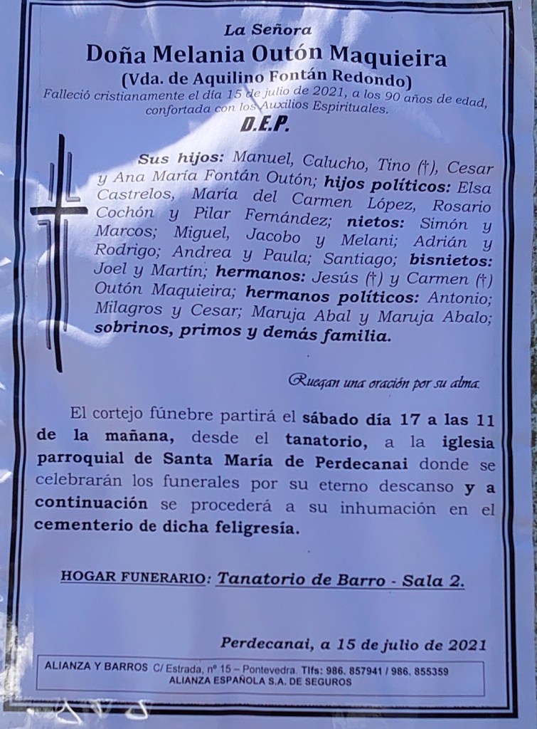 D.E.P. DOÑA MELANIA OUTÓN MAQUIEIRA
