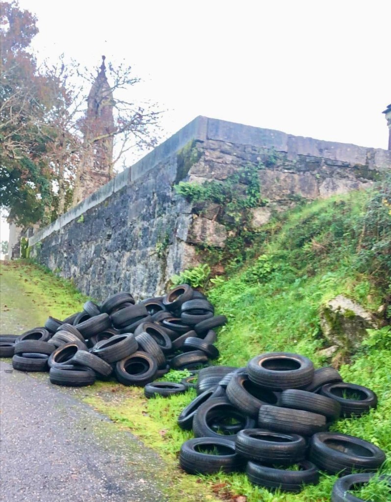 Esta noite produciuse unha vertedura ilegal de rodas de coche nas inmediacións da Igrexa de San Breixo.