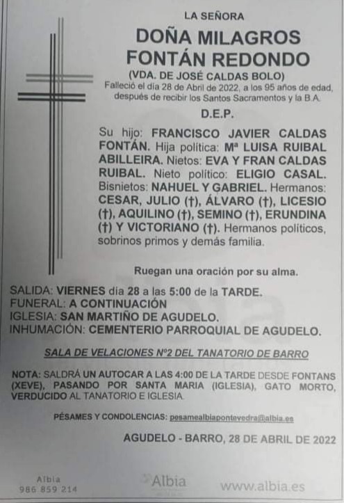 D.E.P. DOÑA MILAGROS FONTÁN REDONDO