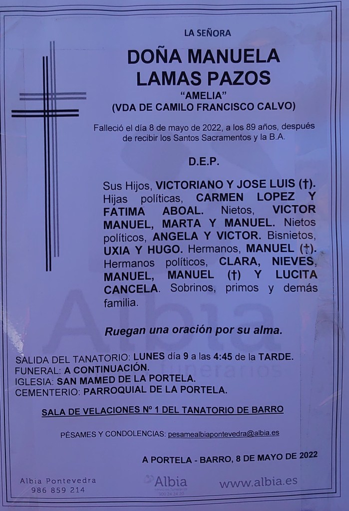 D.E.P. DOÑA MANUELA LAMAS PAZOS
