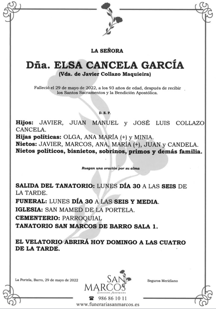D.E.P. Dña. ELSA CANCELA GARCÍA
