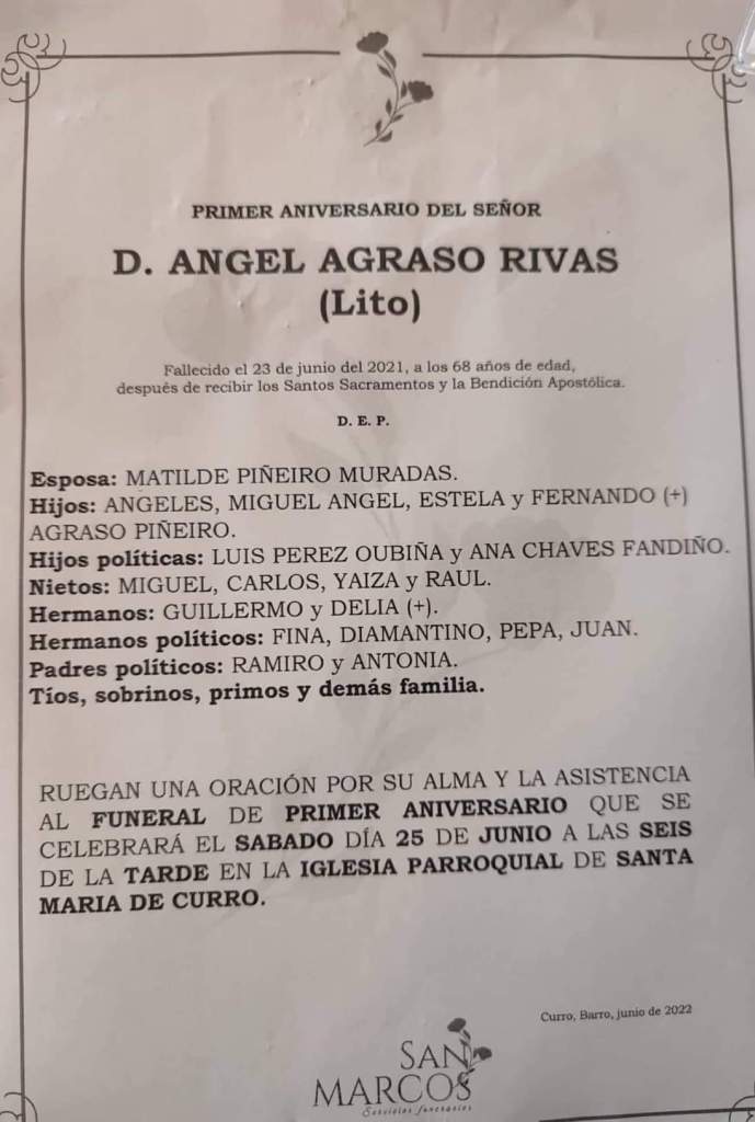 PRIMER ANIVERSARIO D. ANGEL AGRASO RIVAS