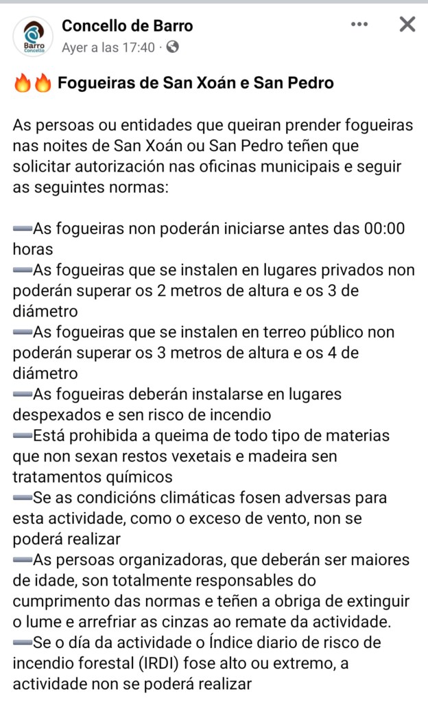 SOLICITUDE DE PERMISOS PARA AS FOGUEIRAS DE SAN JUAN E SAN PEDRO