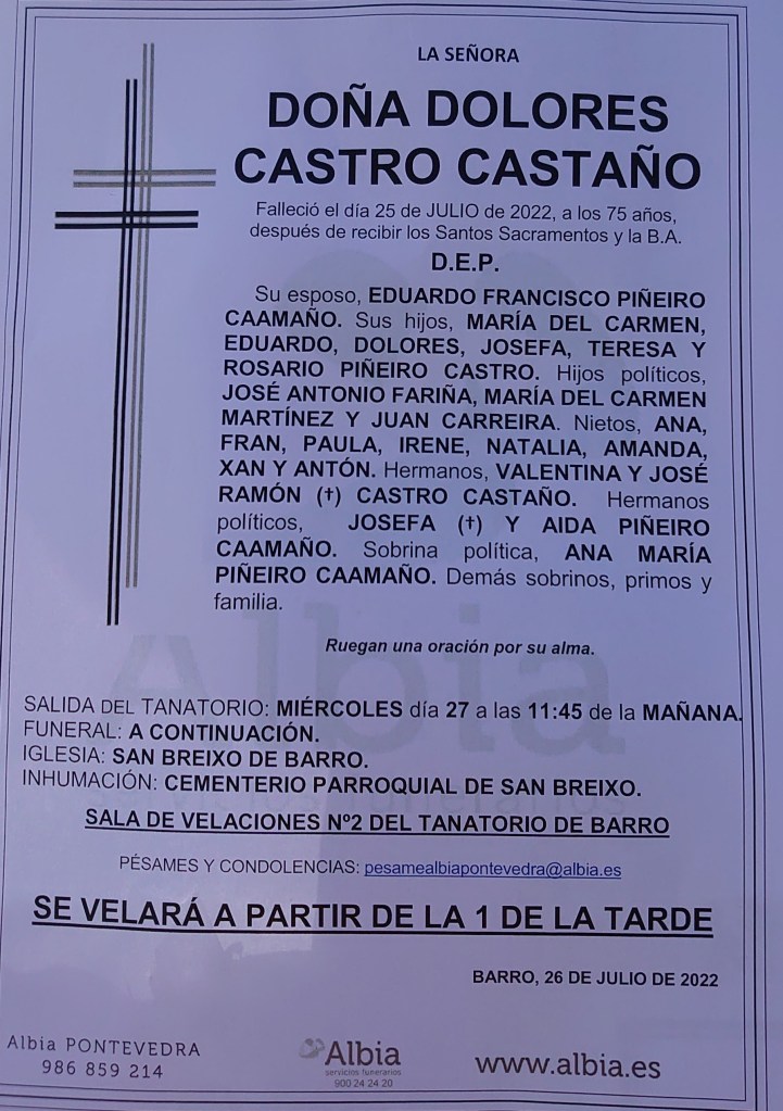 D.E.P. DOÑA DOLORES CASTRO CASTAÑO