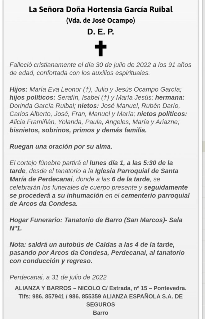 D.E.P. DOÑA HORTENSIA GARCIA RUIBAL
