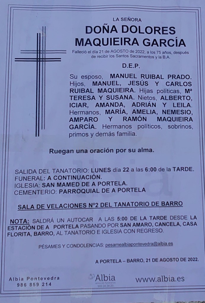 D.E.P. DOÑA DOLORES MAQUIEIRA GARCÍA