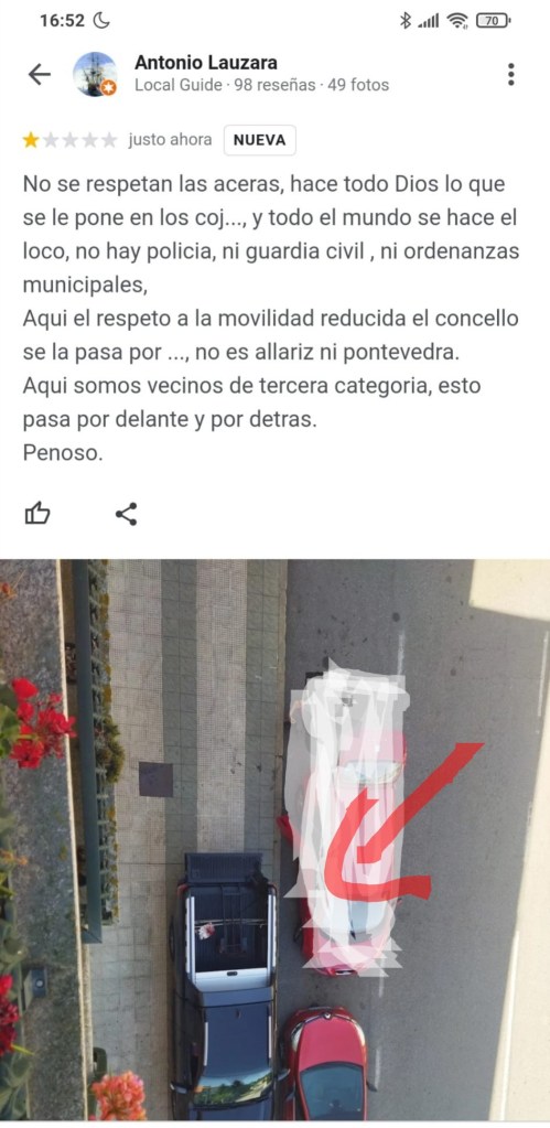 Queixa polo mal uso das beirarrúas na Rua dás Baladas