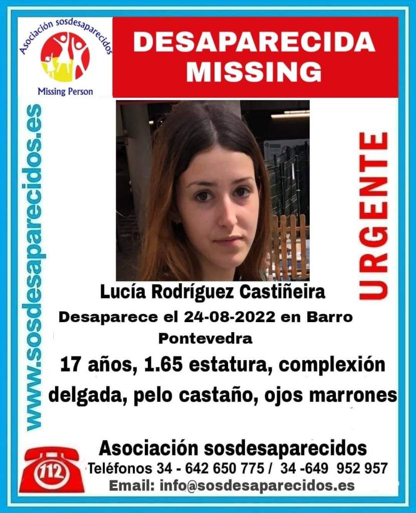 A menor chámase Lucía Rodríguez Castiñeira. Mide 1,65 metros de estatura, é de complexión delgada cun peso de ao redor de 52 quilos. O pelo é longo e ondulado, de cor castaña; e os ollos son marróns, segundo os datos ofrecidos pola asociación.