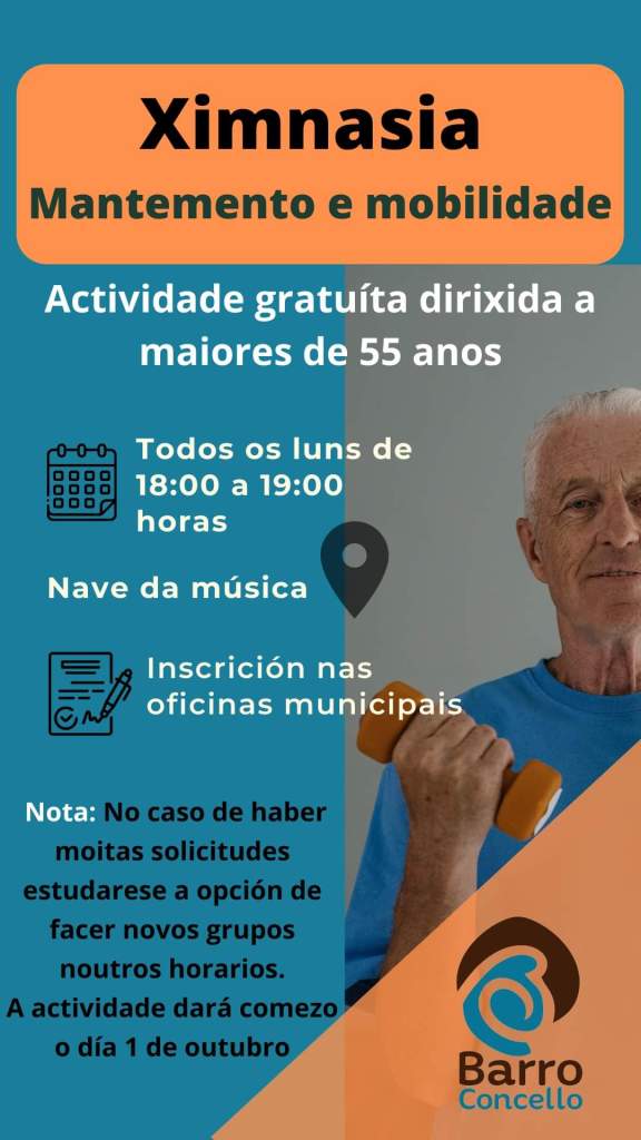 Esta é unha actividade deportiva gratuíta que vai dirixida a persoas a partir dos 55 anos e que ten como obxectivo manter e mellorar as condicións físicas. Todas aquelas persoas que estean interesadas deben anotarse nas oficinas municipais.