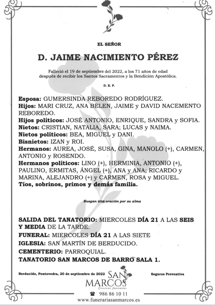 D.E.P. D. JAIME NACIMIENTO PÉREZ