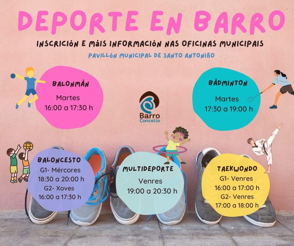 Deron comezo en Barro distintas actividades deportivas: bádminton, baloncesto, taekwondo, balonmán e multideporte e aínda hai prazas libre para apuntarse