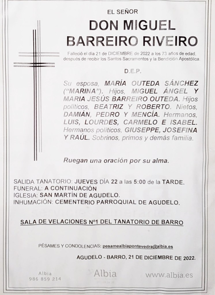 D.E.P. DON MIGUEL BARREIRO RIVEIRO