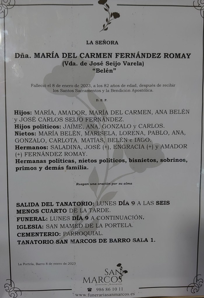 D.E.P. Dña MARÍA DEL CARMEN FERNÁNDEZ ROMAY
