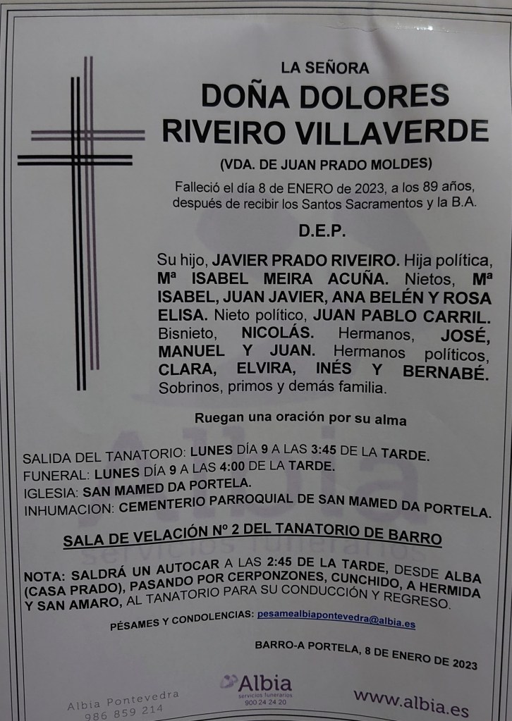 D.E.P. DOÑA DOLORES RIVEIRO VILLAVERDE