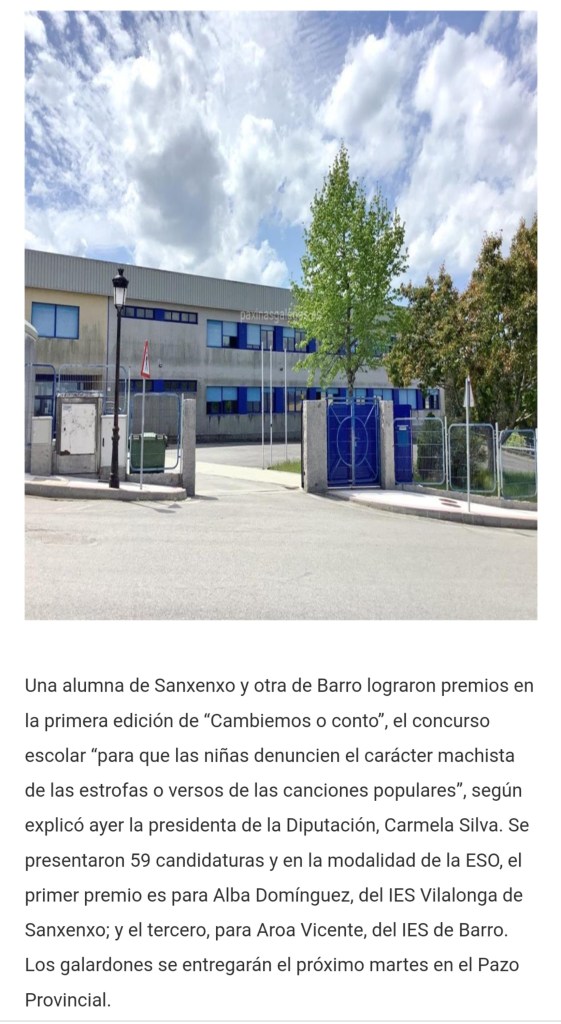 Aroa Vicente, do IES de Barro premiada por fomentar a igualdade