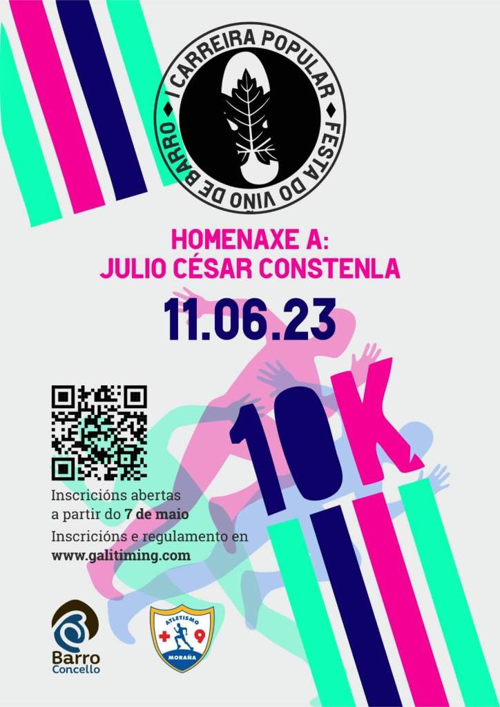 O concello de Barro, en colaboración co Club Atletismo +9, pon en marcha a I Carreira Popular da Festa do viño, nunha primeira edición que renderá homenaxe a Julio César Constenla, veciño de Barro pioneiro neste deporte na localidade de Barro.