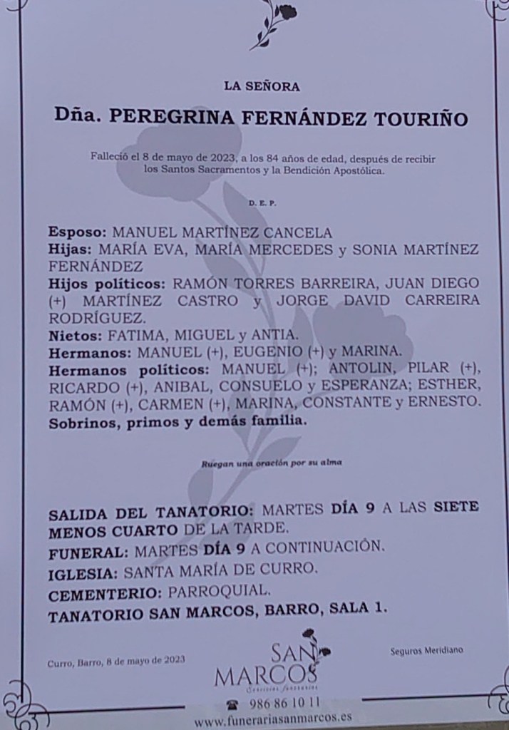 D.E.P. Dña. PEREGRINA FERNÁNDEZ TOURIÑO