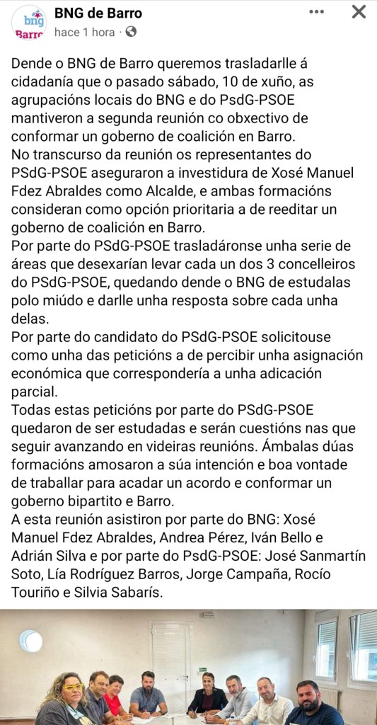 SEGUNDA REUNIÓN CO OBXECTIVO DE CONFORMAR UN GOBERNO DE COALICIÓN EN BARRO