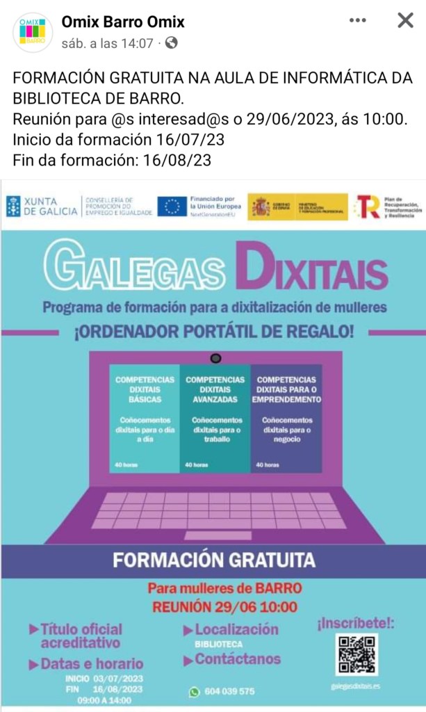 PROGRAMA DE FORMACIÓN PARA A DIXITALIZACIÓN DE MULLERES