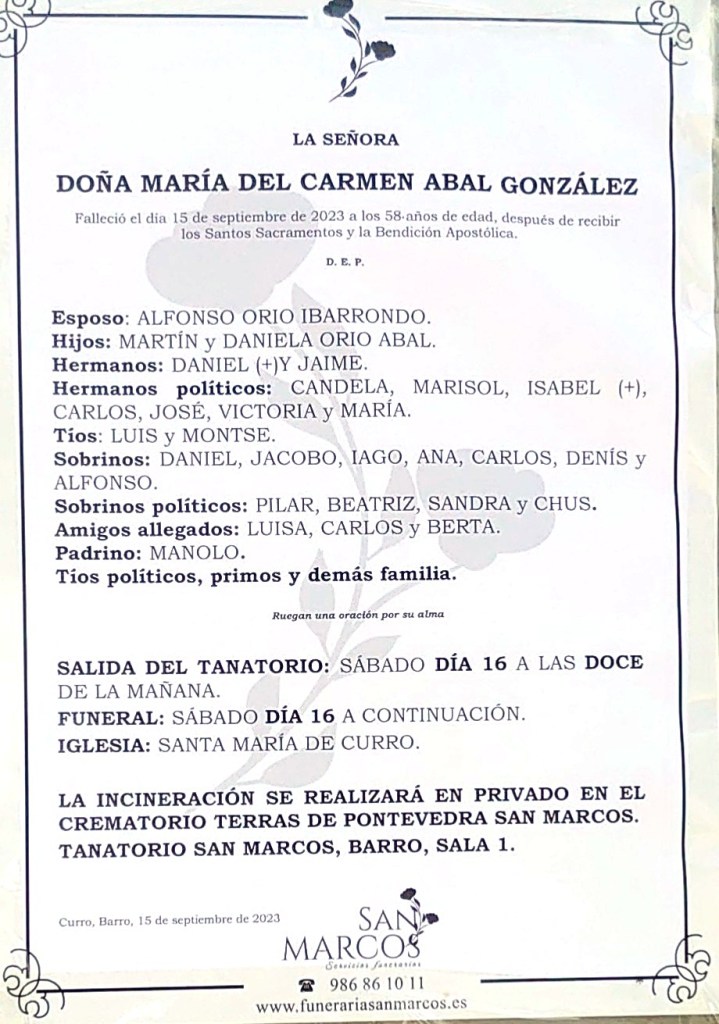 D.E.P. DOÑA MARÍA DEL CARMEN ABAL GONZÁLEZ