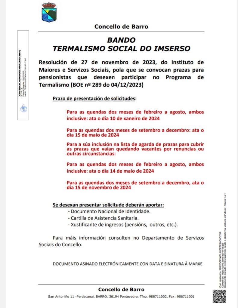 PROGRAMA DE TERMALISMO SOCIAL DO IMSERSO.