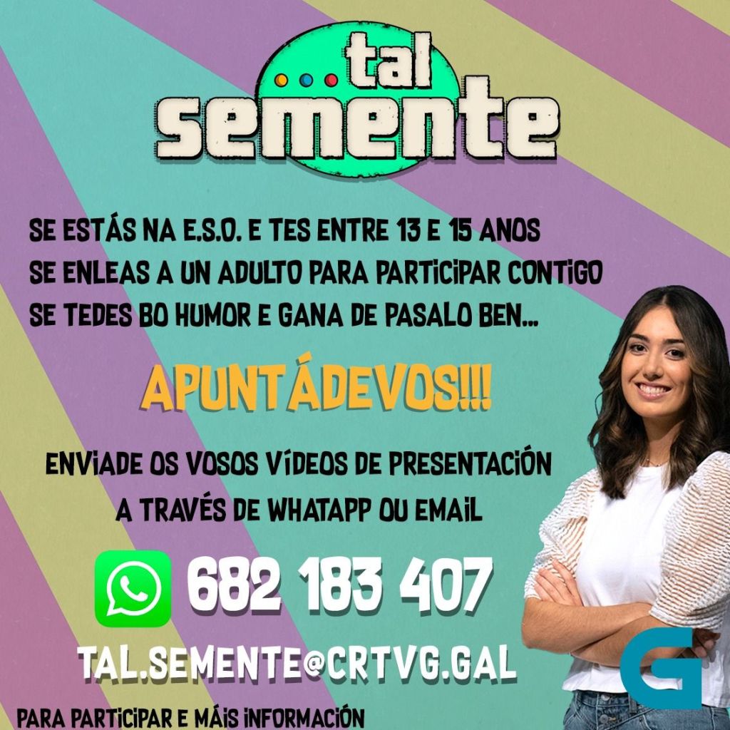 Para rexistrarvos ou obter máis información, contactade connosco por whatsapp no número 682 183 407 ou no enderezo electrónico tal.semente@crtvg.gal