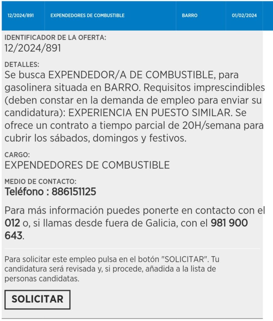 OFERTA DE EMPREGO EXPENDEDOR/A DE COMBUSTIBLE