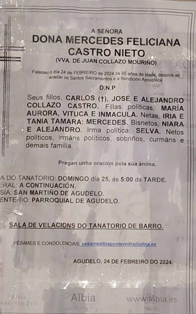 D.E.P. DONA MERCEDES FELICIANA CASTRO NIETO