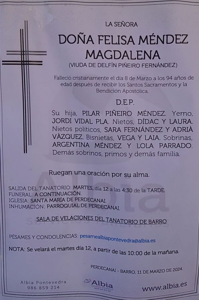 D.E.P. DOÑA FELISA MÉNDEZ MAGDALENA