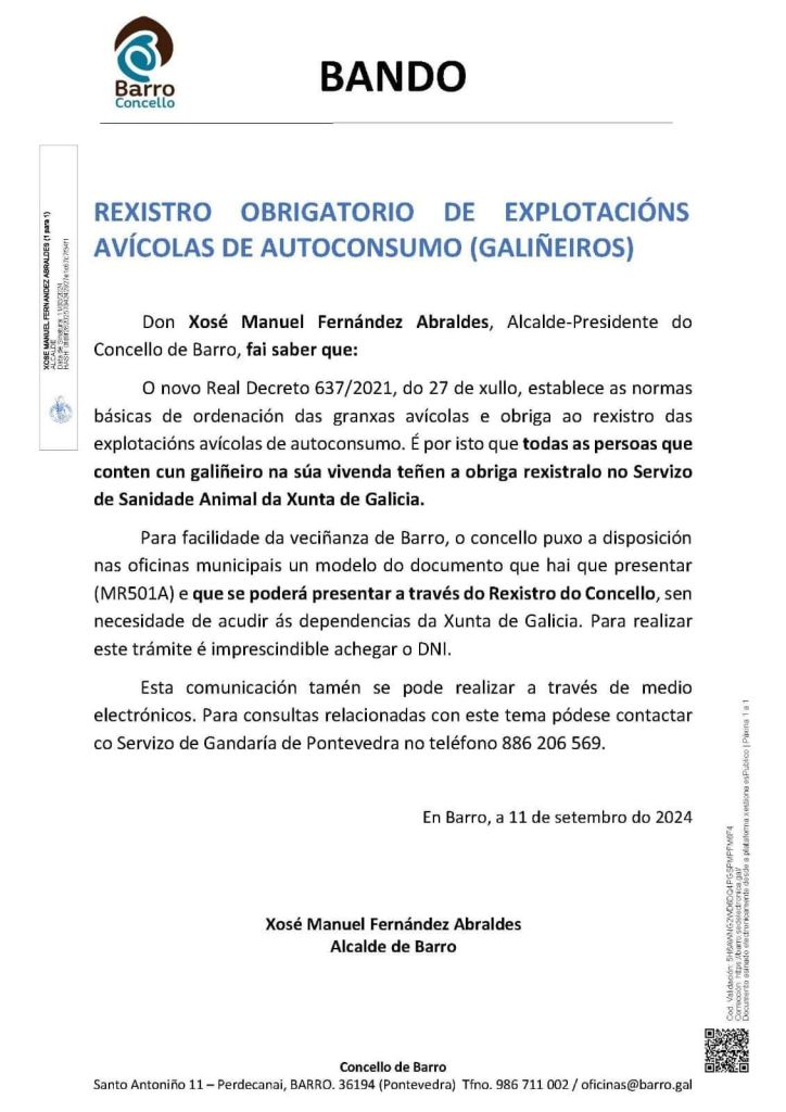 REXISTRO OBRIGATORIO DE EXPLOTACIÓNS AVÍCOLAS DE AUTOCONSUMO
