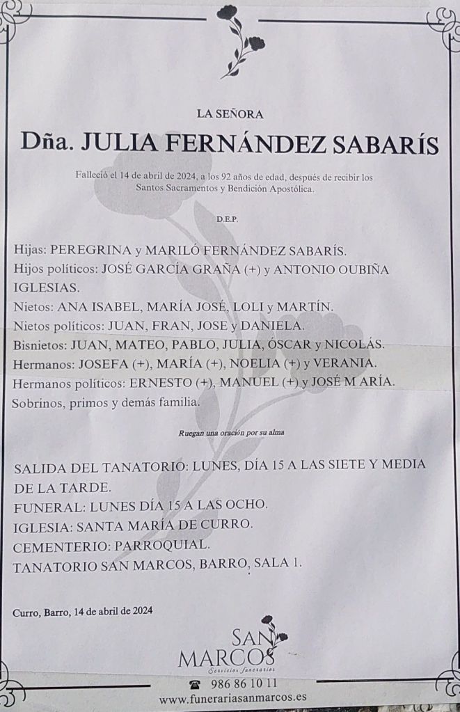 D.E.P. Dña. JULIA FERNÁNDEZ SABARÍS