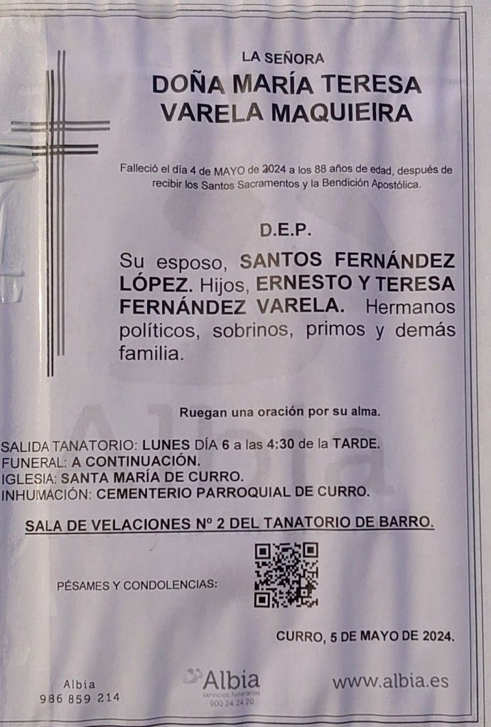 D.E.P. DOÑA MARÍA TERESA VARELA MAQUIEIRA