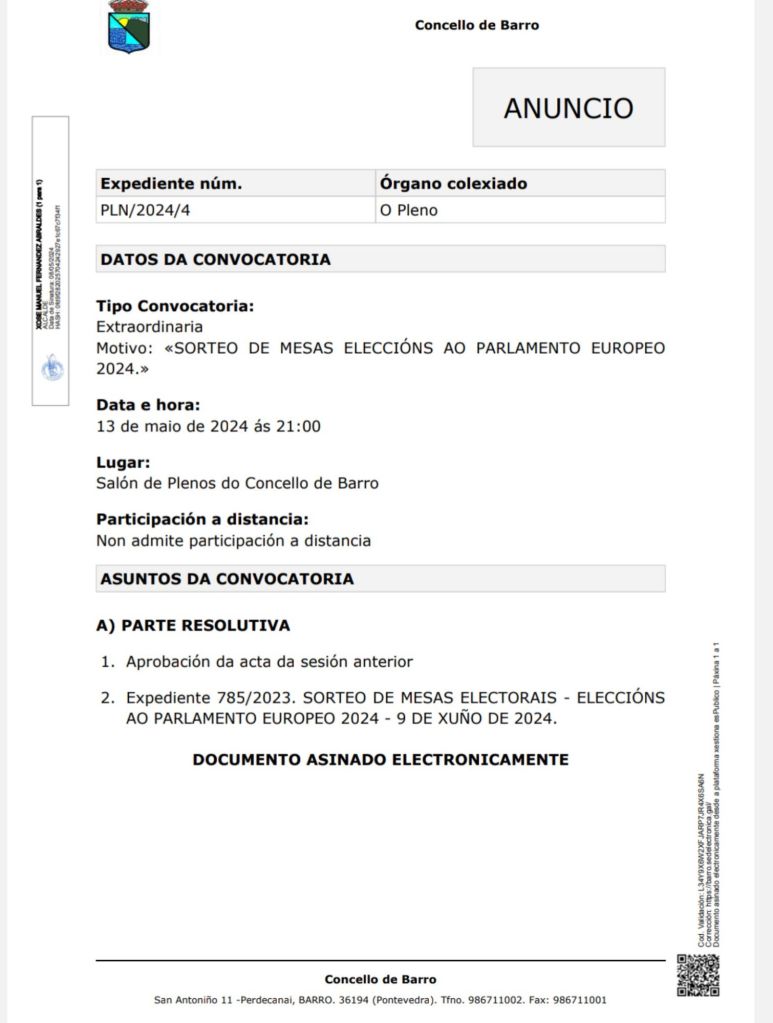 SORTEO DE MESAS ELECCIÓNS AO PARLAMENTO EUROPEO2024