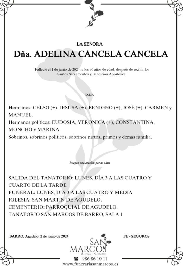 D.E.P. Dña. ADELINA CANCELA CANCELA