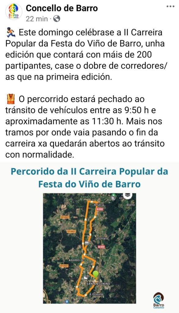 Mais de 200 deportistas  daranse cita este domingo en Barro para participar na II Carreira Popular da Festa do Viño de Barro