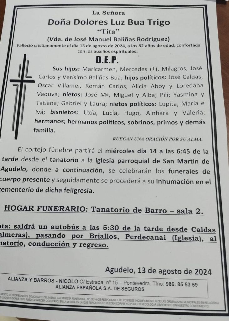 D.E.P. DOÑA DOLORES LUZ BUA TRIGO