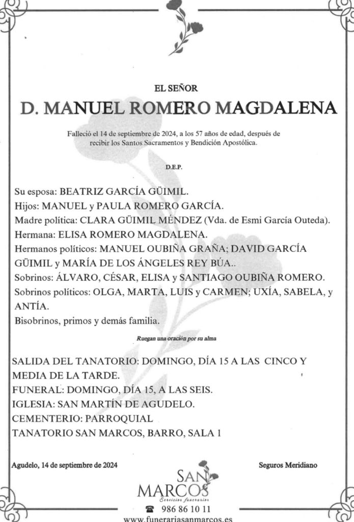 D.E.P. D. MANUEL ROMERO MAGDALENA