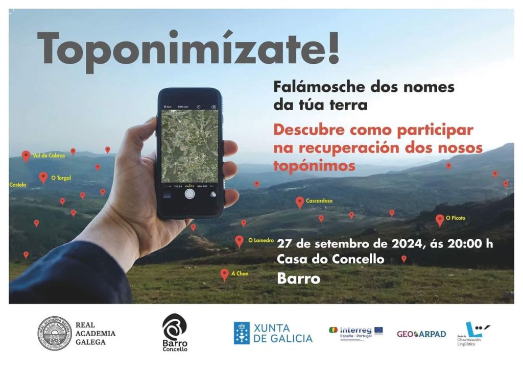 O vindeiro 27 de setembro a Real Academia Galega realizará un acto para falar sobre a nosa toponímia e a súa recuperación. Será ás 20 horas no edificio do Concello de Barro.