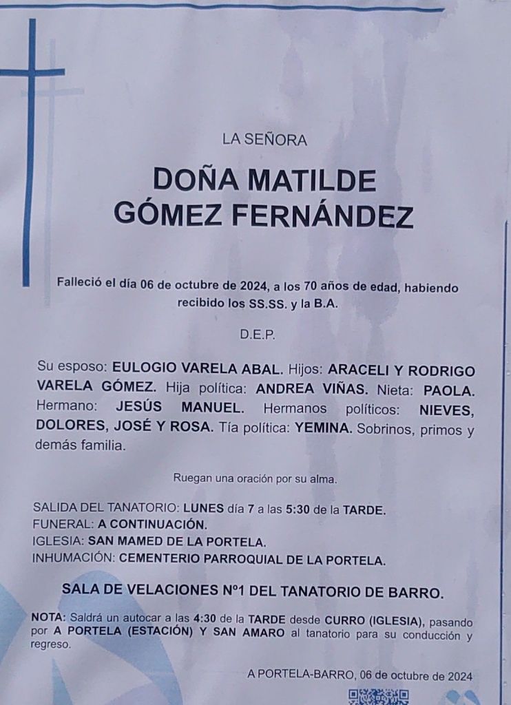 D.E.P. DOÑA MATILDE GÓMEZ FERNÁNDEZ