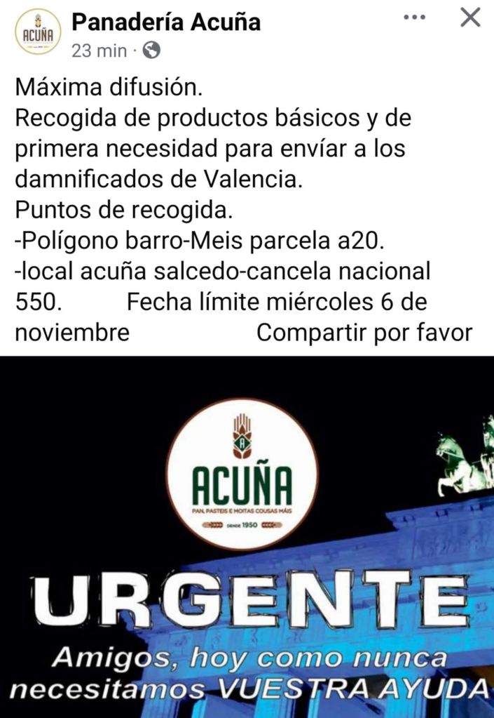 RECOLLIDA DE PRODUCTOS BÁSICOS E DE PRIMEIRA NECESIDADE NA PANADERÍA ACUÑA NO POLÍGONO DE CURRO-BARRO