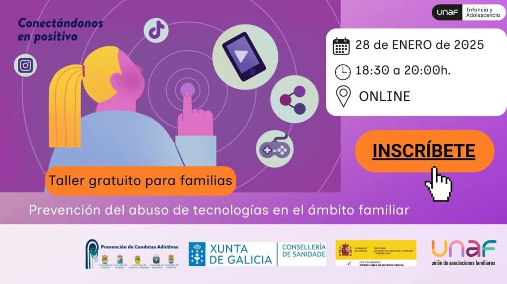 💻 A sesión será realizada en liña por persoal especializado da UNAF (Unión de asociacións familiares).