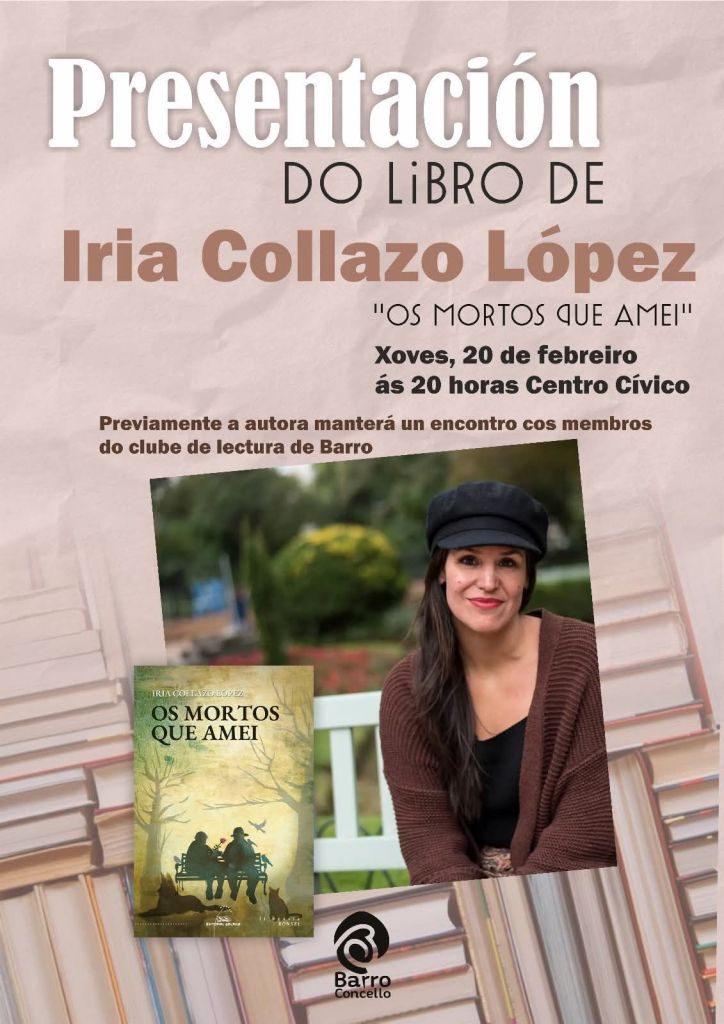 Presentación do libro de Iria Collazo López, “Os mortos que amei” ás 20 horas no Centro cívico de Barro.