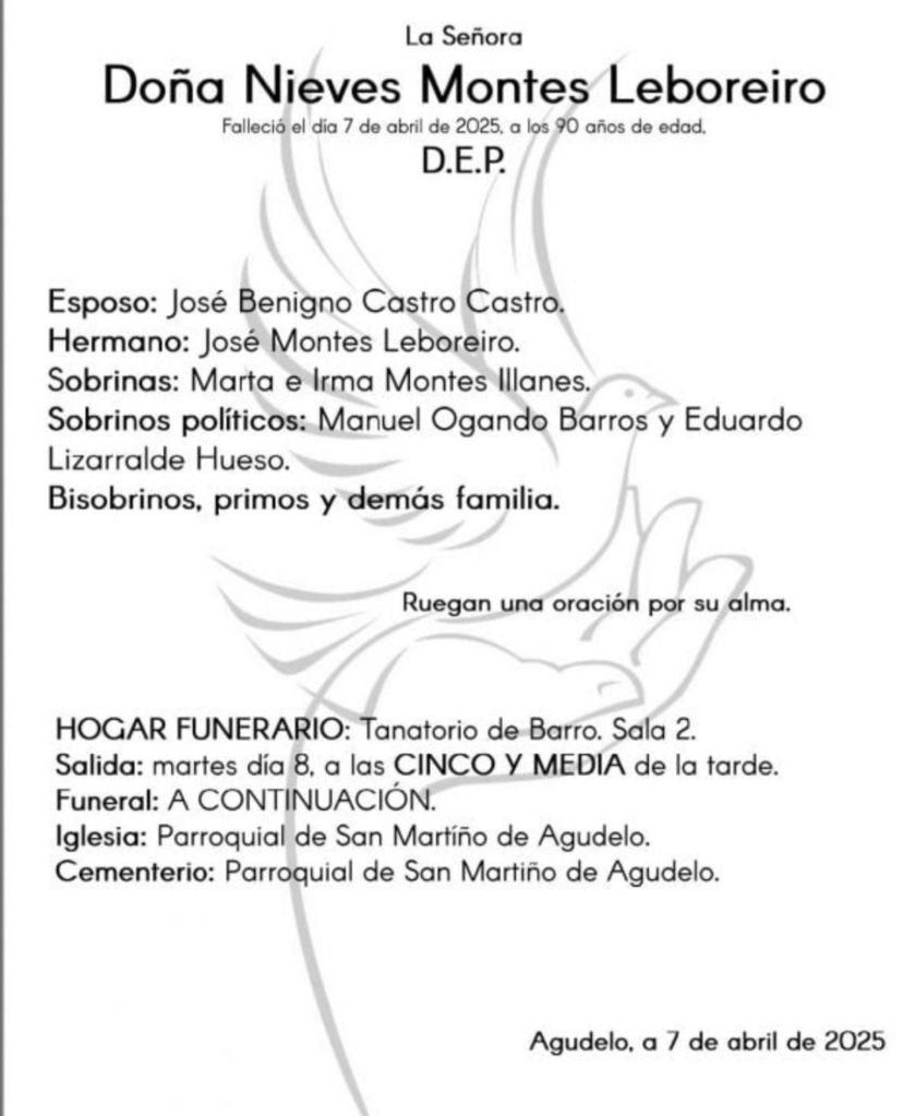 D.E.P. DOÑA NIEVES MONTES LEBOREIRO